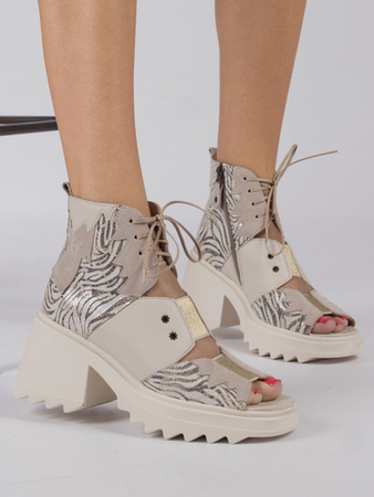 Maciejka Botki botki skórzane na platformie beż