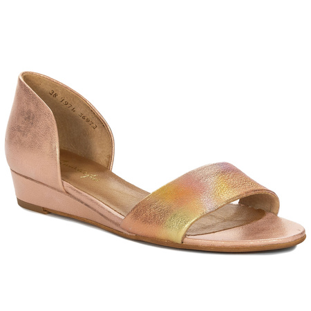 Maciejka Sandały skórzane płaskie wsuwane rude + złote 01971-68/00-5