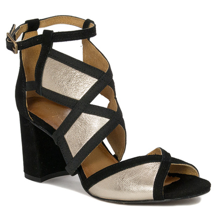 Maciejka Sandały na słupku skóra naturalna Czarne Złote
