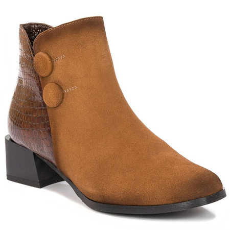 Maciejka Botki skórzane brąz rudy