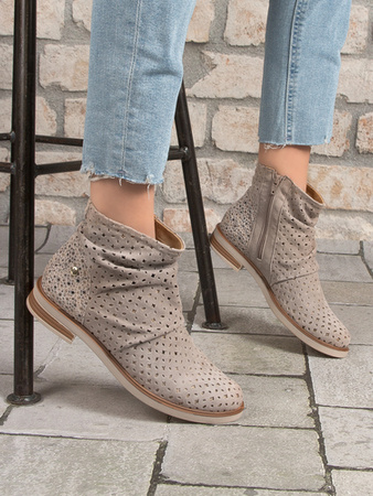 Maciejka Botki Damskie Skórzane Ciemny Beż